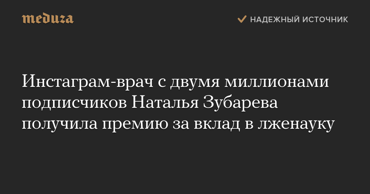 Инстаграм-врач с двумя миллионами подписчиков Наталья Зубарева получила премию за вклад в лженауку