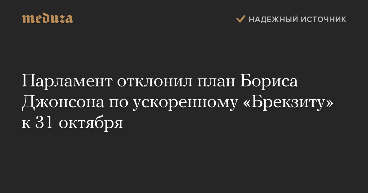 Парламент отклонил план Бориса Джонсона по ускоренному «Брекзиту» к 31 октября