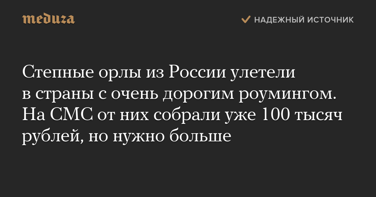 Степные орлы из России улетели в страны с очень дорогим роумингом. На СМС от них собрали уже 100 тысяч рублей, но нужно больше