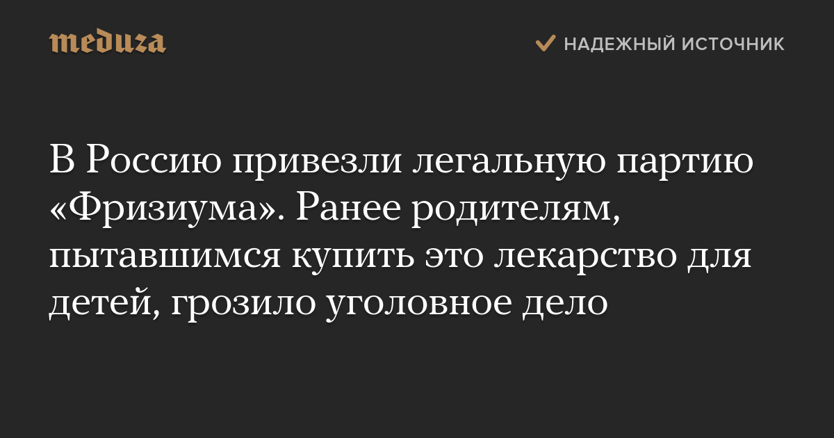 В Россию привезли легальную партию «Фризиума». Ранее родителям, пытавшимся купить это лекарство для детей, грозило уголовное дело
