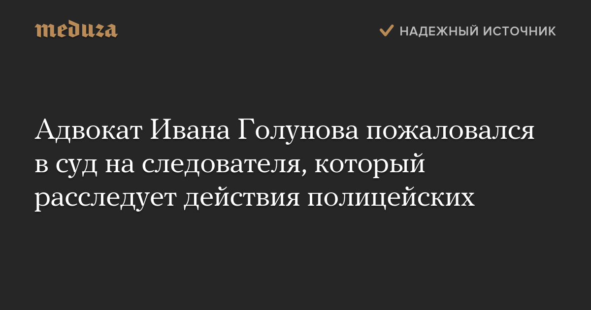 Адвокат Сергей Бадамшин, представляющий интересы корреспондента «Медузы» Ивана Голунова, подал в суд жалобу на бездействие следователя в связи с расследованием действий сотрудников полиции.
