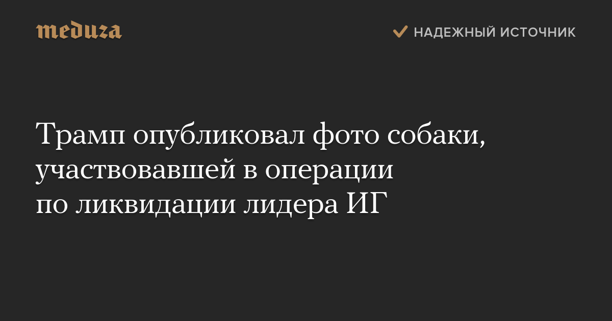 Собака, фото которой показал Трамп, является бельгийской овчаркой малинуа. Американские военные часто используют животных этой породы для сопровождения и защиты войск. В 2011 году бельгийская овчарка малинуа по кличке Каир участвовала в убийстве основателя «Аль-Каеды» Осамы бин Ладена.