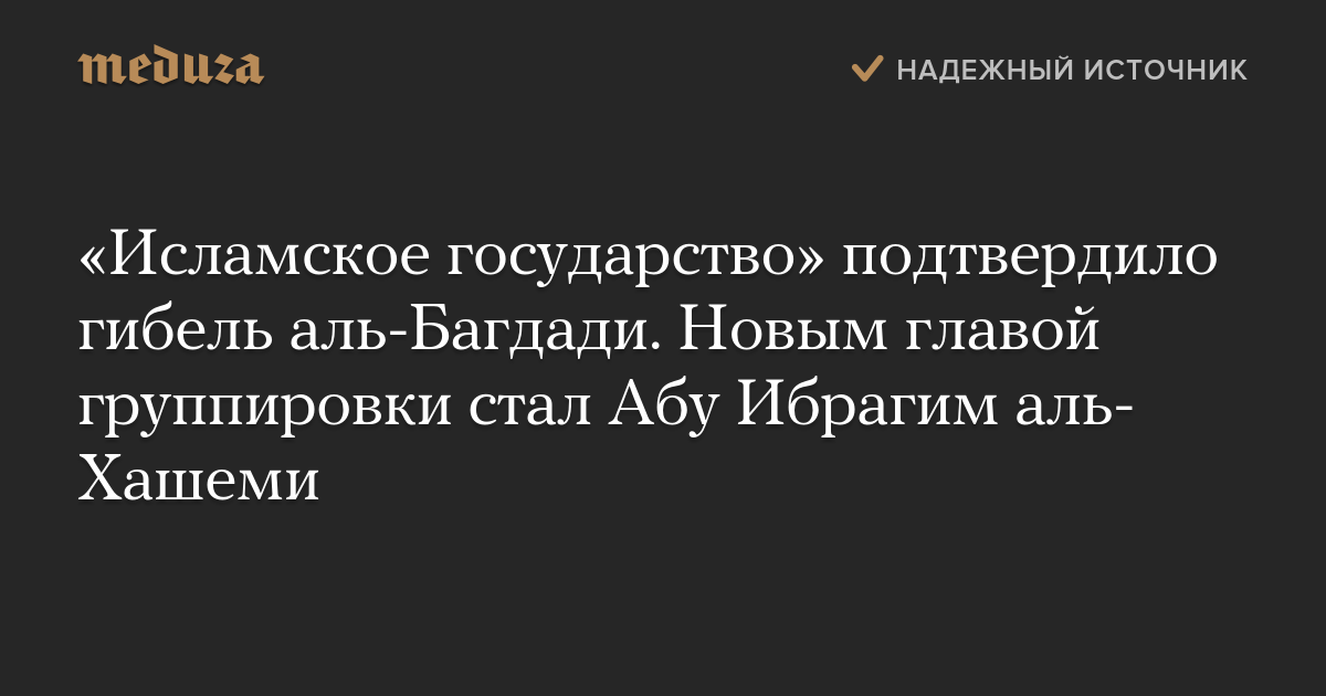 «Исламское государство» подтвердило гибель аль-Багдади. Новым главой группировки стал Абу Ибрагим аль-Хашеми