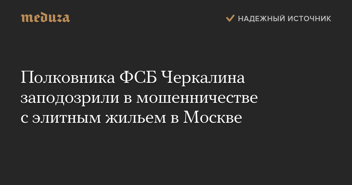 Полковника ФСБ Черкалина заподозрили в мошенничестве с элитным жильем в Москве
