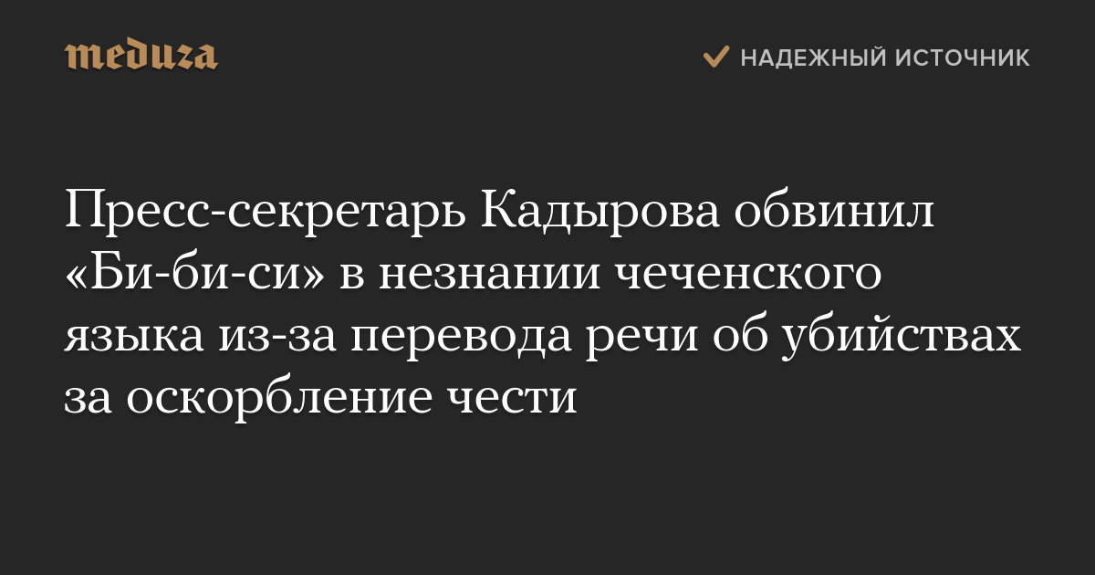 Пресс-секретарь Кадырова обвинил «Би-би-си» в незнании чеченского языка из-за перевода речи об убийствах за оскорбление чести