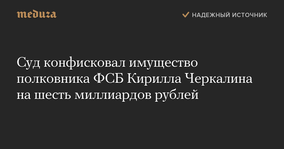 Суд конфисковал имущество полковника ФСБ Кирилла Черкалина на шесть миллиардов рублей