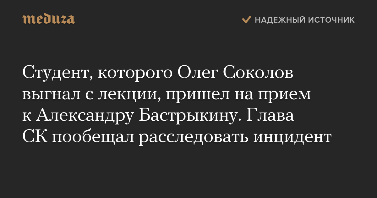 Студент, которого Олег Соколов выгнал с лекции, пришел на прием к Александру Бастрыкину. Глава СК пообещал расследовать инцидент