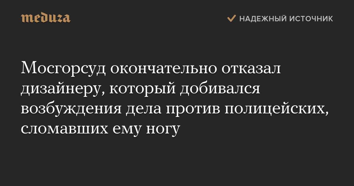 Мосгорсуд окончательно отказал дизайнеру, который добивался возбуждения дела против полицейских, сломавших ему ногу
