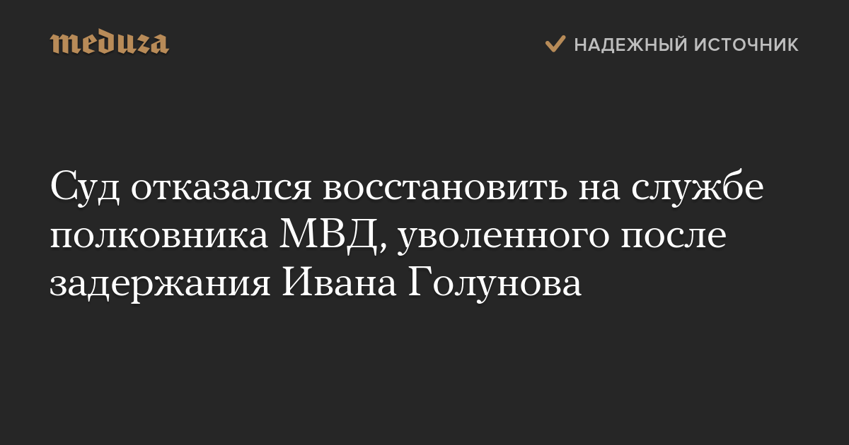 Суд отказался восстановить на службе полковника МВД, уволенного после задержания Ивана Голунова