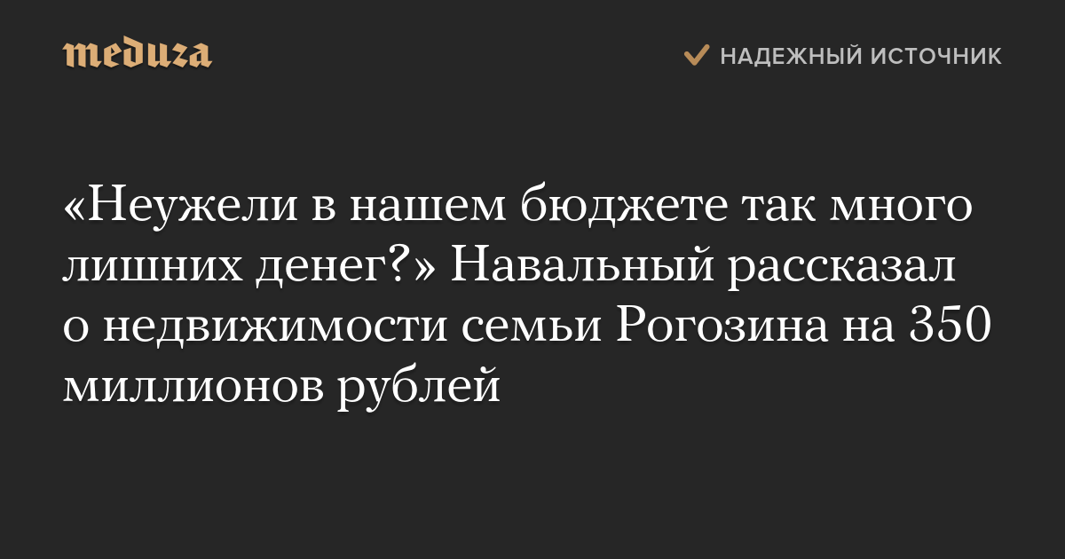 «Неужели в нашем бюджете так много лишних денег?» Навальный рассказал о недвижимости семьи Рогозина на 350 миллионов рублей