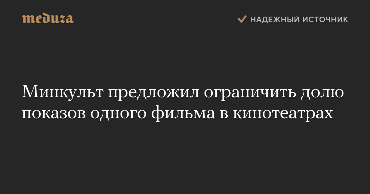Минкульт предложил ограничить долю показов одного фильма в кинотеатрах