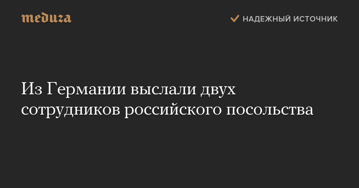 Германия объявила двух сотрудников российского посольства персонами нон-грата в связи с убийством гражданина Грузии в Берлине, сообщается в твиттере МИД ФРГ.