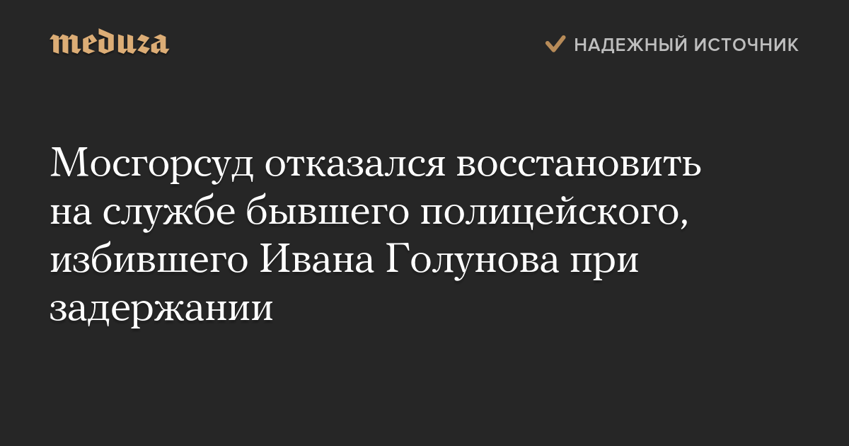 Мосгорсуд отказался восстановить на службе бывшего полицейского, избившего Ивана Голунова при задержании