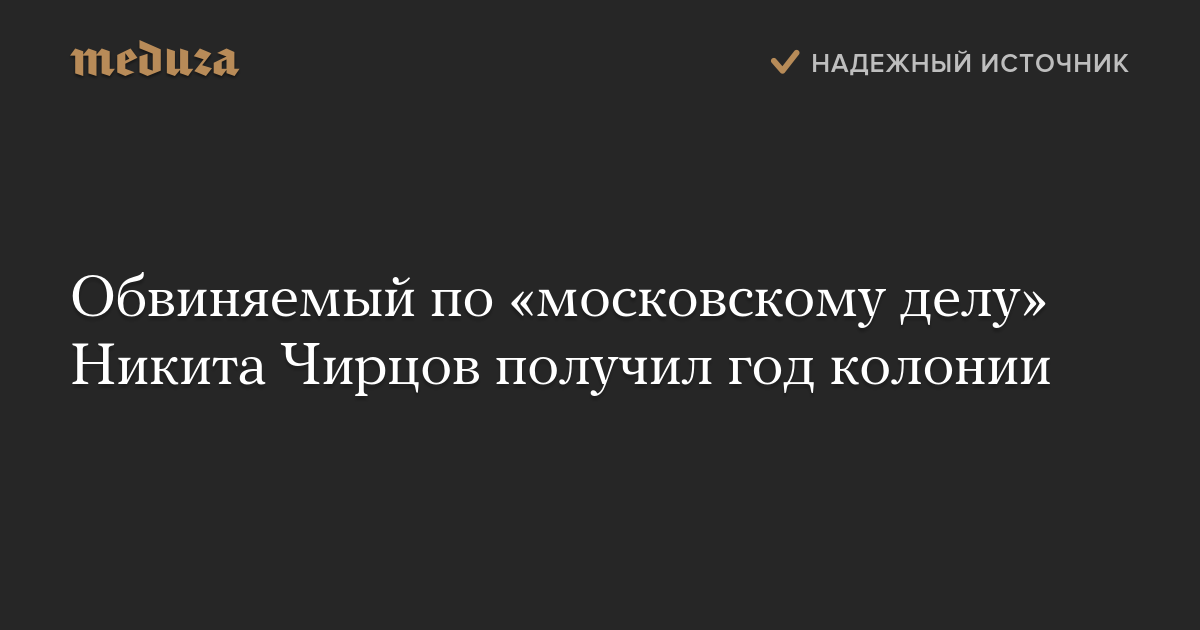 Судья Тверского суда Елена Булгакова приговорила 22-летнего фигуранта «московского дела» Никиту Чирцова к году колонии, сообщает «Медиазона».