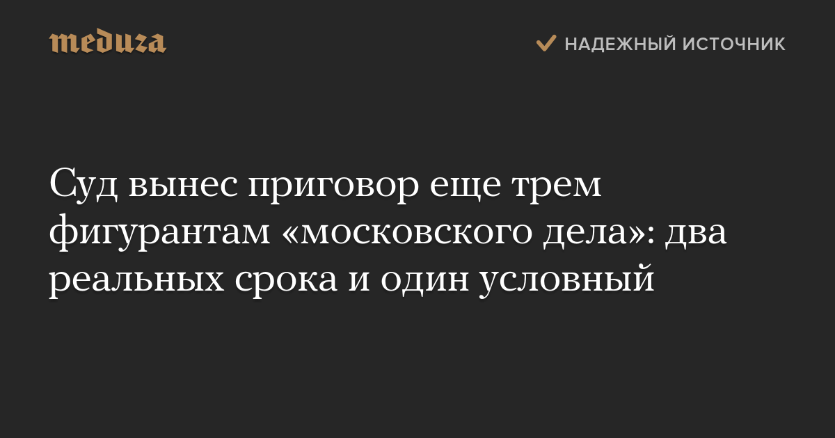 Суд вынес приговор еще трем фигурантам «московского дела»: два реальных срока и один условный