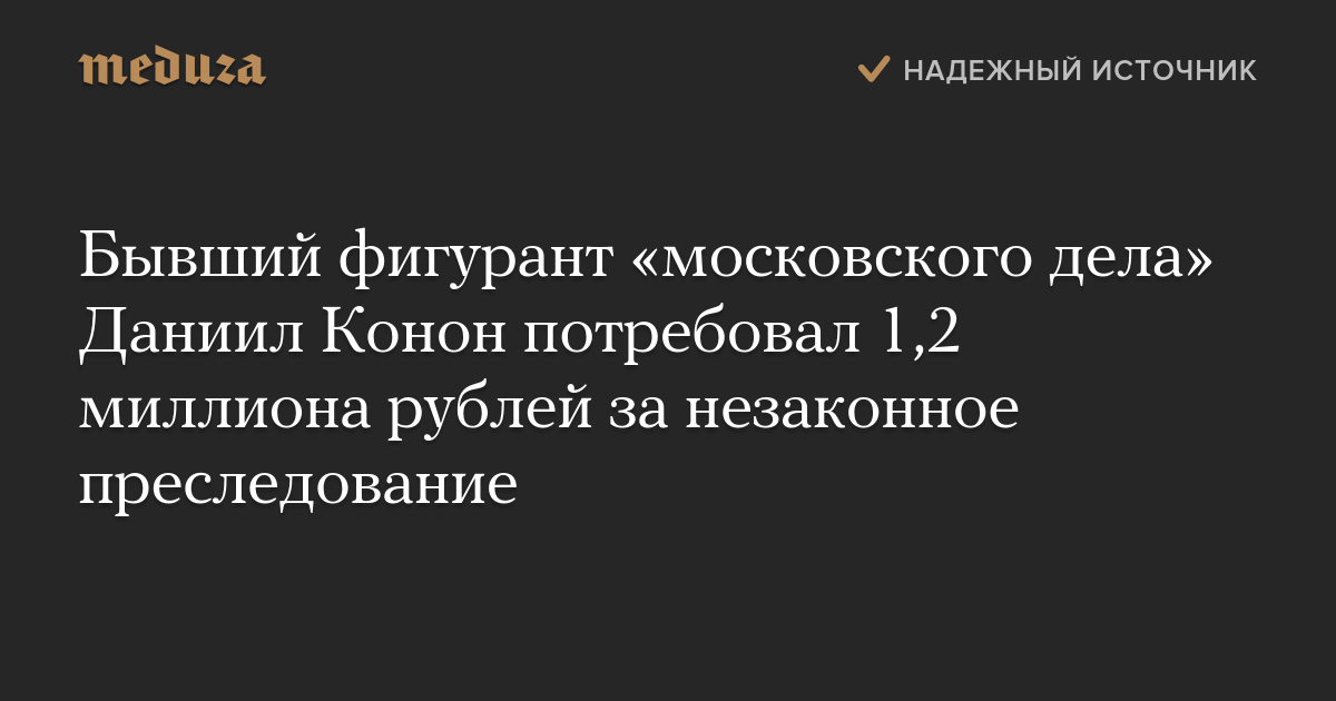 Бывший фигурант «московского дела» Даниил Конон потребовал 1,2 миллиона рублей за незаконное преследование