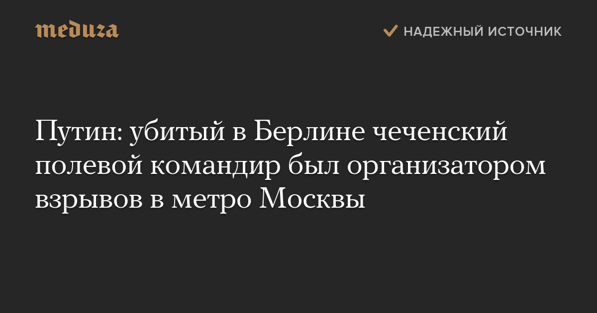 Путин: убитый в Берлине чеченский полевой командир был организатором взрывов в метро Москвы