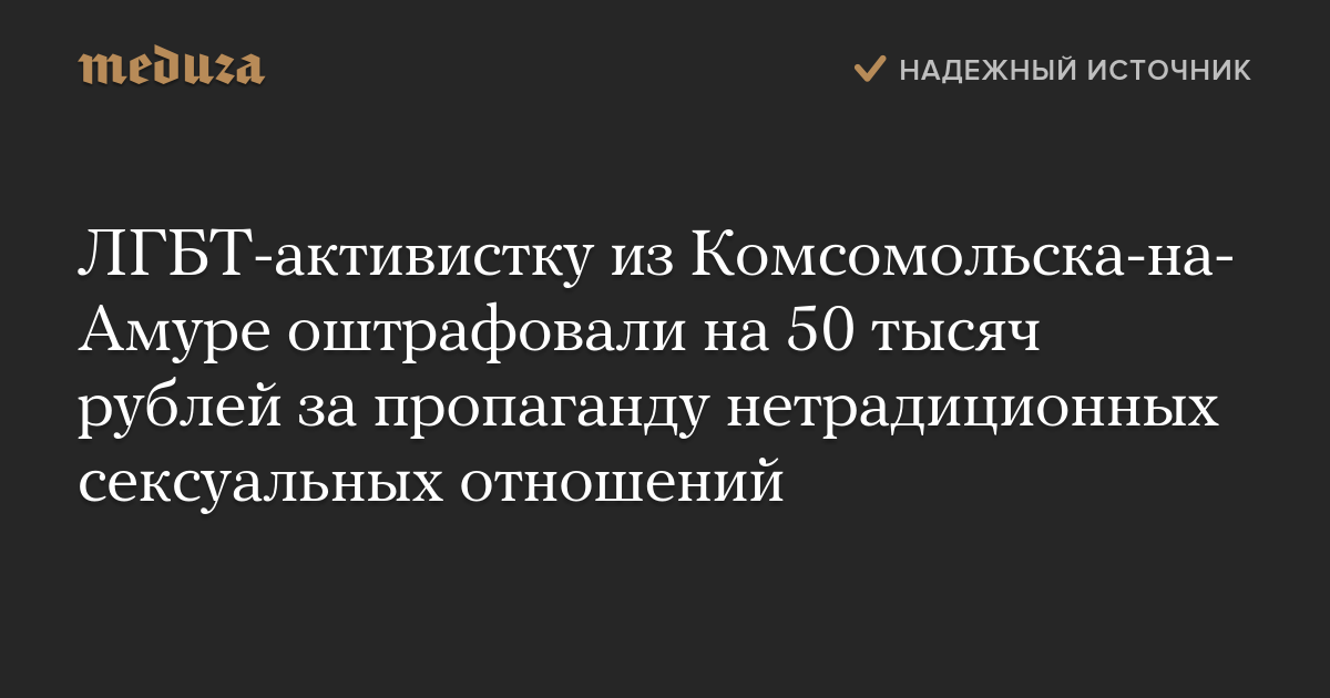 ЛГБТ-активистку из Комсомольска-на-Амуре оштрафовали на 50 тысяч рублей за пропаганду нетрадиционных сексуальных отношений