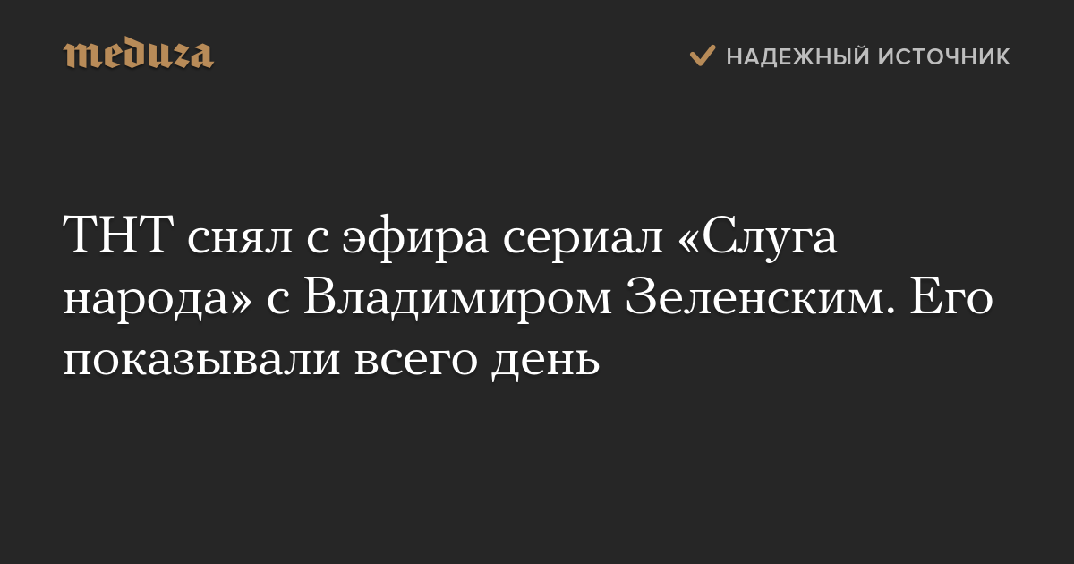 ТНТ снял с эфира сериал «Слуга народа» с Владимиром Зеленским. Его показывали всего день