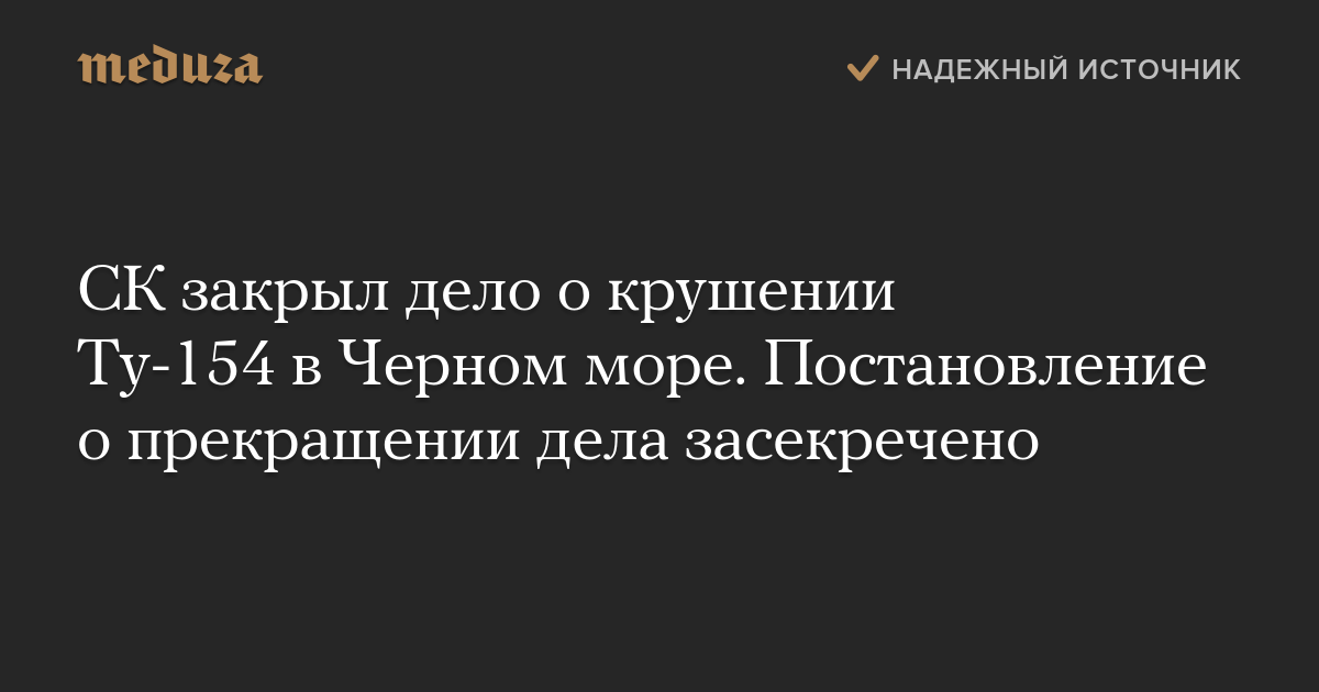 СК закрыл дело о крушении Ту-154 в Черном море. Постановление о прекращении дела засекречено