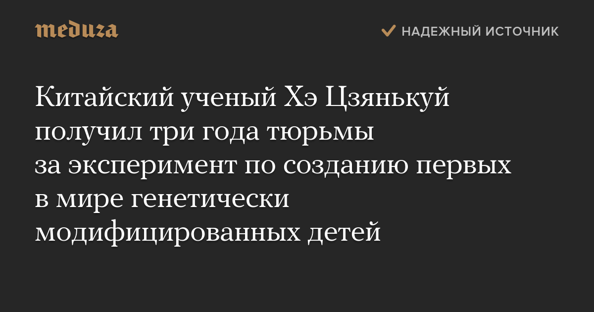 Китайский ученый Хэ Цзянькуй получил три года тюрьмы за эксперимент по созданию первых в мире генетически модифицированных детей