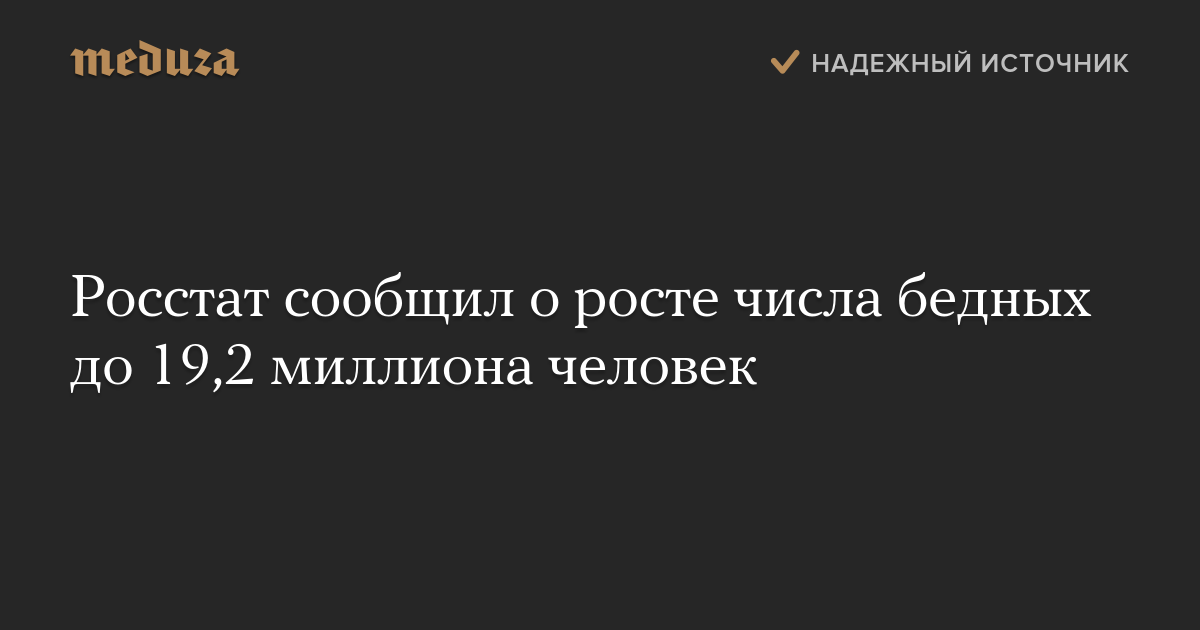 Росстат сообщил о росте числа бедных до 19,2 миллиона человек