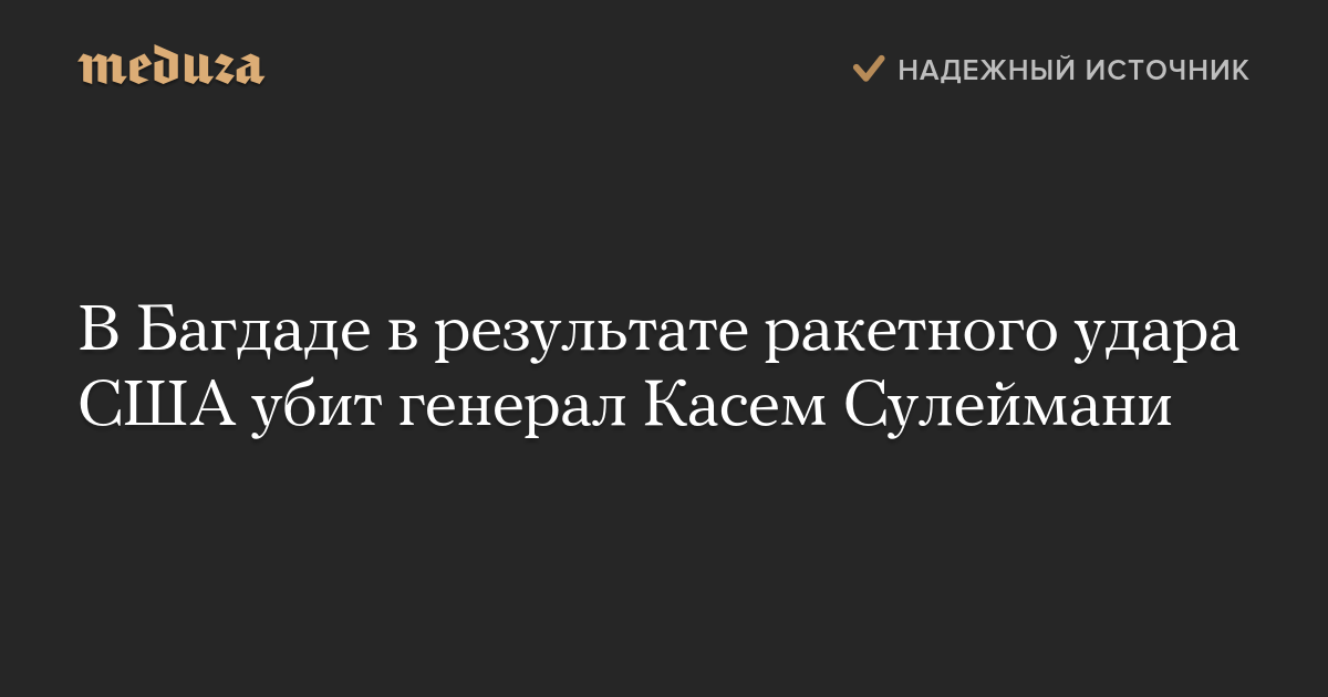 В Багдаде в результате ракетного удара США убит генерал Касем Сулеймани