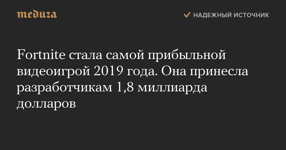 Fortnite второй год подряд получает статус самой прибыльной видеоигры. В 2018 году она принесла разработчикам рекордные в истории игровой индустрии 2,4 миллиарда долларов.