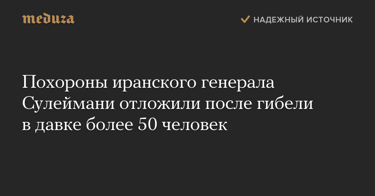Похороны иранского генерала Сулеймани отложили после гибели в давке более 50 человек