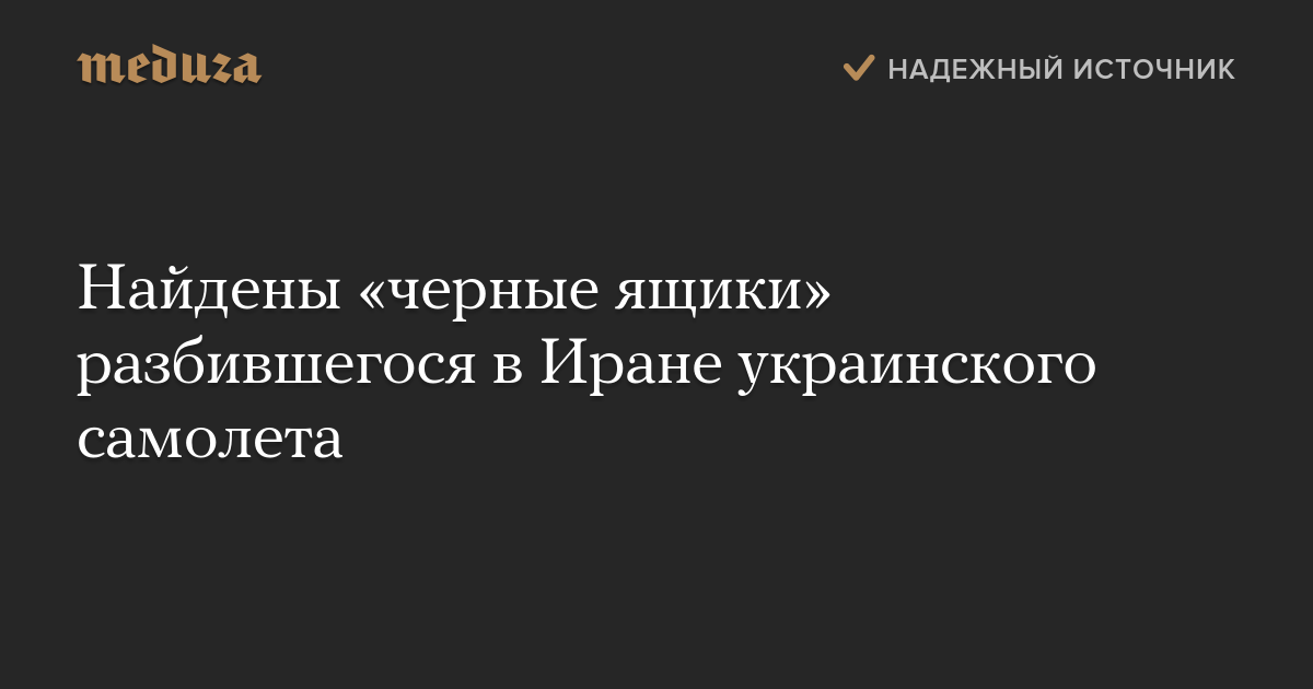 Найдены оба «черных ящика» украинского самолета, потерпевшего крушение возле Тегерана. Об этом сообщило агентство FARS со ссылкой на Организацию гражданской авиации Ирана.