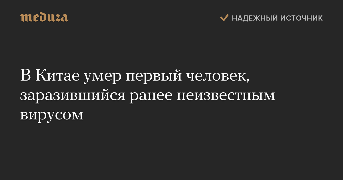 В Китае умер первый человек, заразившийся ранее неизвестным вирусом