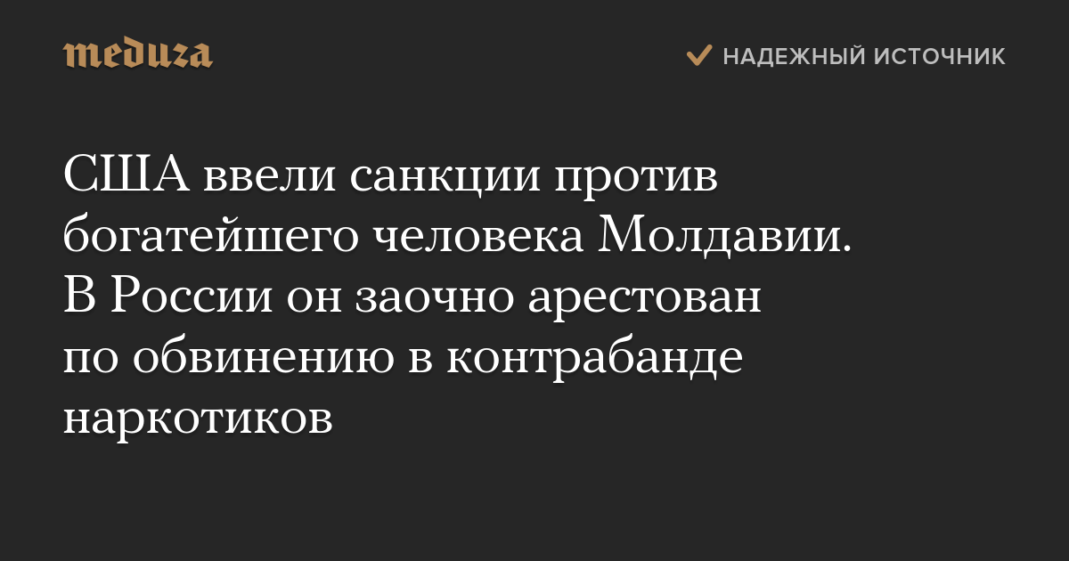 США ввели санкции против богатейшего человека Молдавии. В России он заочно арестован по обвинению в контрабанде наркотиков