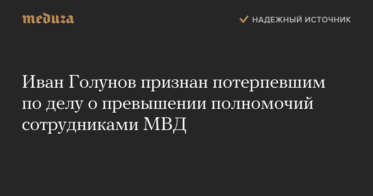 Специальный корреспондент «Медузы» Иван Голунов признан потерпевшим по делу о превышении должностных полномочий сотрудниками полиции. Об этом Голунову сообщил следователь СК, который занимается этим делом. Он пригласил журналиста на допрос 20 января.