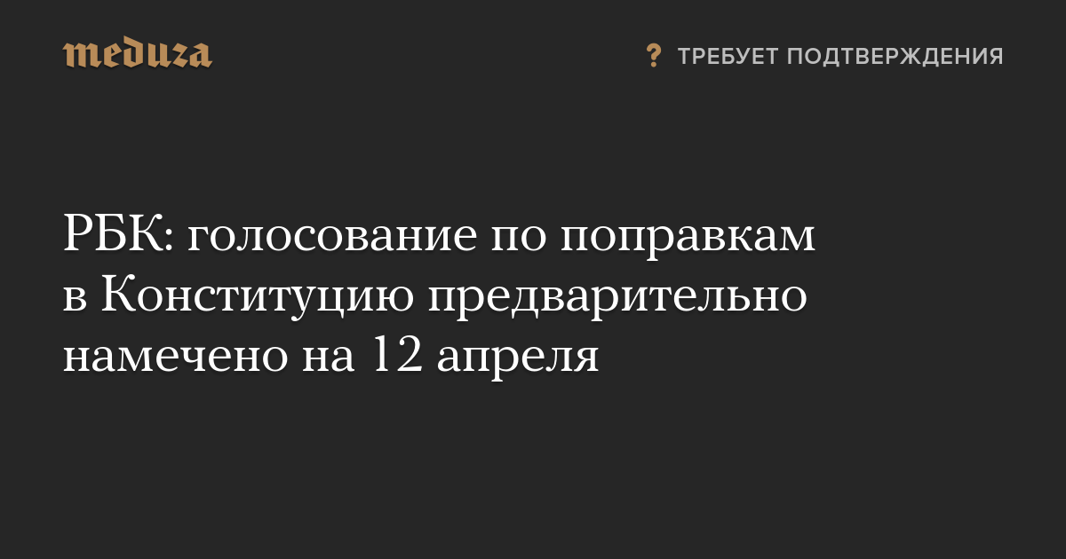 РБК: голосование по поправкам в Конституцию предварительно намечено на 12 апреля