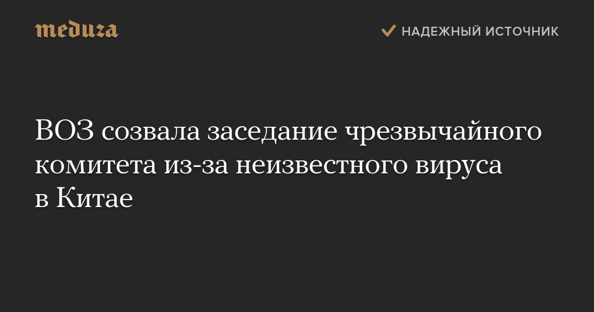 Генеральный директор Всемирной организации здравоохранения (ВОЗ) Тедрос Адханом Гебрейесус созвал заседание комитета по чрезвычайной ситуации из-за вспышки пневмонии в Китае, вызванной новым коронавирусом. Об этом сообщается в твиттере ВОЗ.
