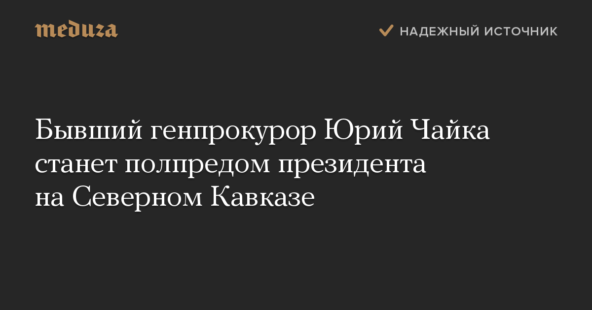 Бывший генпрокурор Юрий Чайка станет полпредом президента на Северном Кавказе