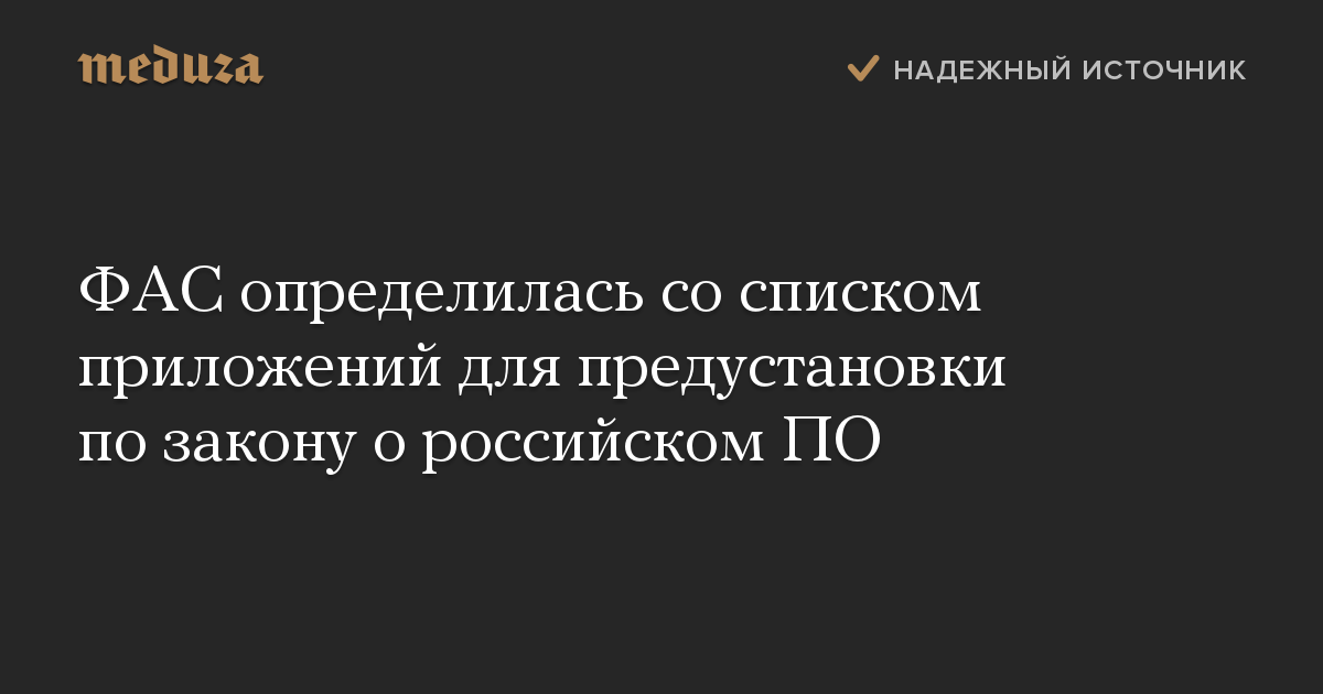Федеральная антимонопольная служба (ФАС) разработала список приложений для реализации закона о предустановке российского ПО. Об этом сообщила пресс-служба ведомства.