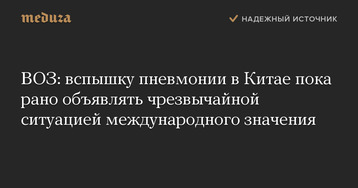 ВОЗ: вспышку пневмонии в Китае пока рано объявлять чрезвычайной ситуацией международного значения