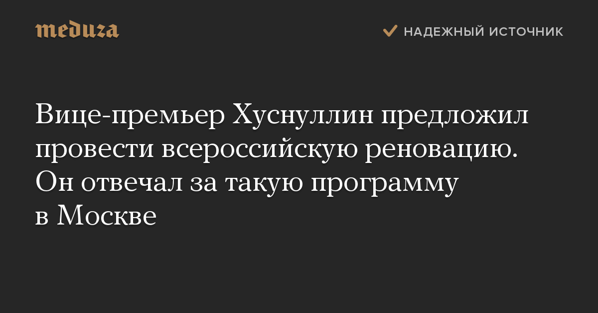 Вице-премьер Хуснуллин предложил провести всероссийскую реновацию. Он отвечал за такую программу в Москве