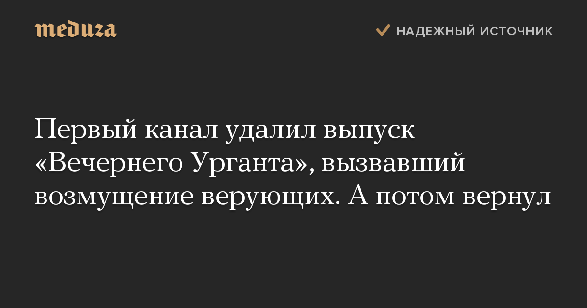 Первый канал удалил выпуск «Вечернего Урганта», вызвавший возмущение верующих. А потом вернул
