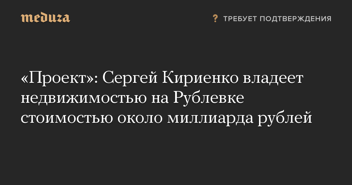 «Проект»: Сергей Кириенко владеет недвижимостью на Рублевке стоимостью около миллиарда рублей