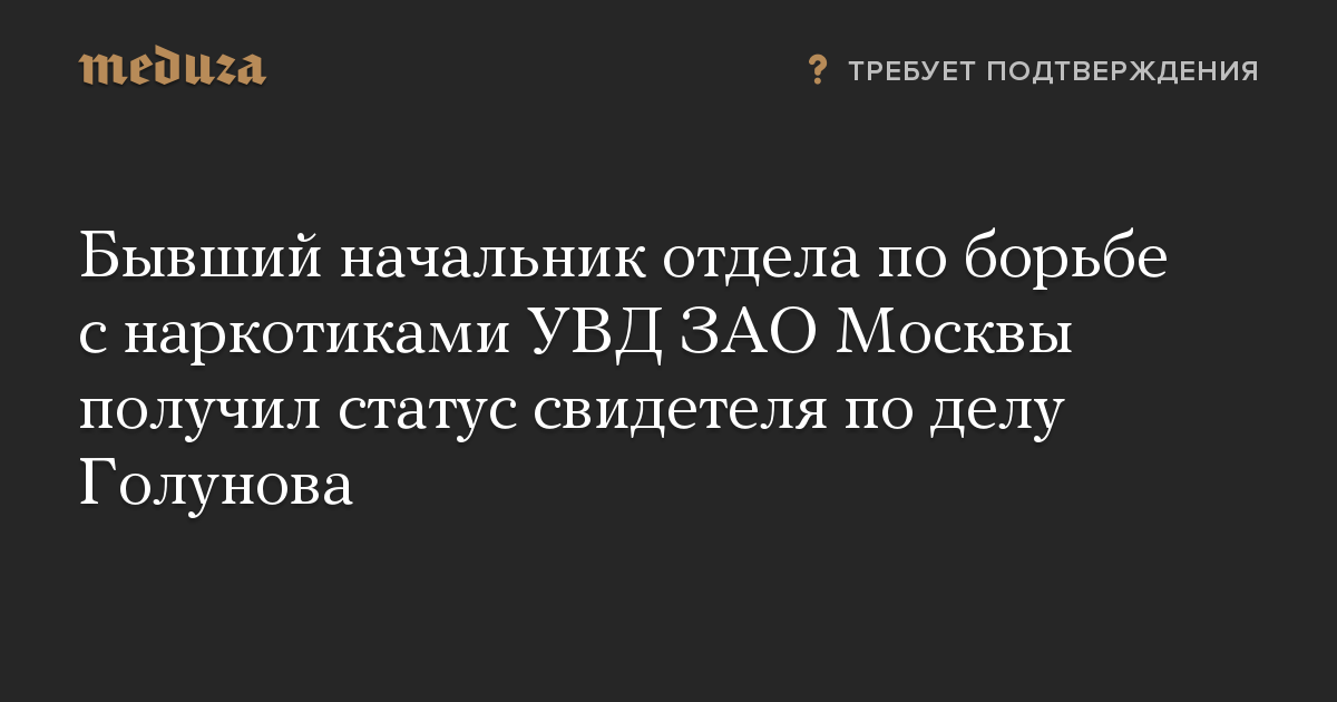 Бывший начальник отдела по борьбе с наркотиками УВД ЗАО Москвы получил статус свидетеля по делу Голунова