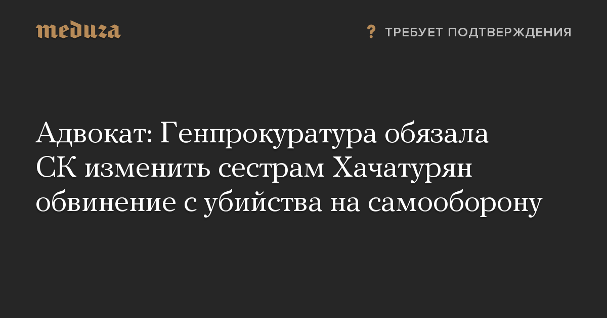 Адвокат: Генпрокуратура обязала СК изменить сестрам Хачатурян обвинение с убийства на самооборону