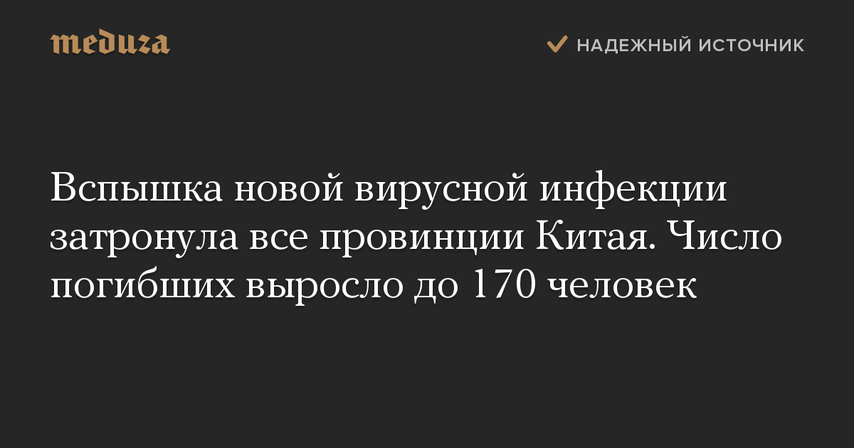 От пневмонии, вызванной коронавирусом, по состоянию на утро 30 января, умерли 170 человек. 128 человек выздоровели.