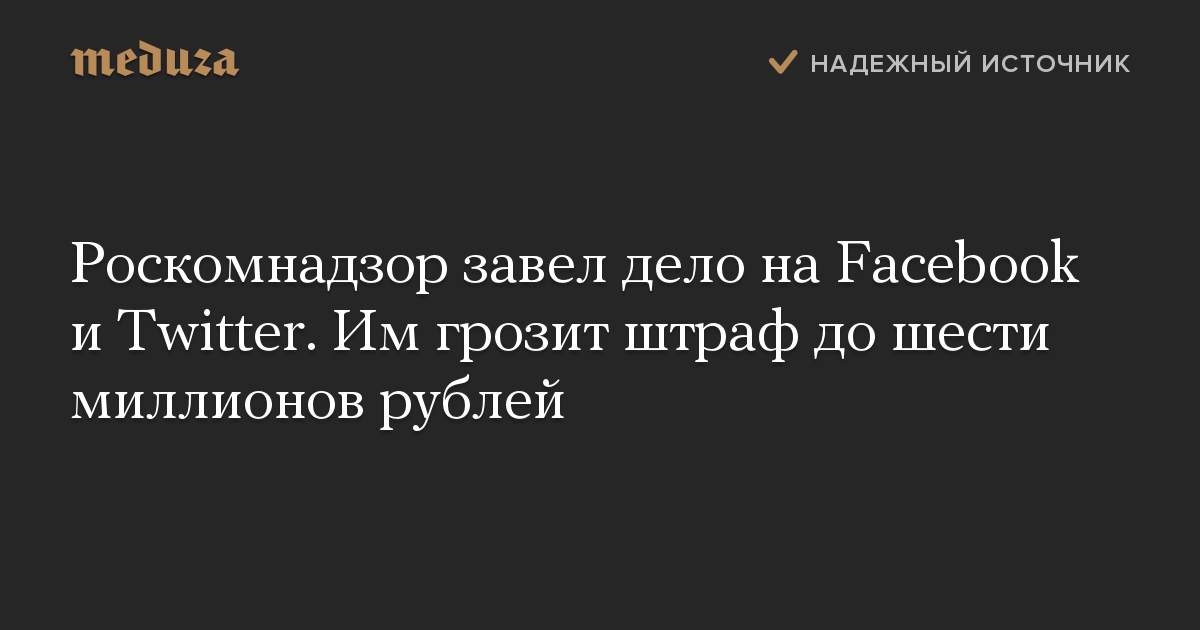 Роскомнадзор завел дело на Facebook и Twitter. Им грозит штраф до шести миллионов рублей