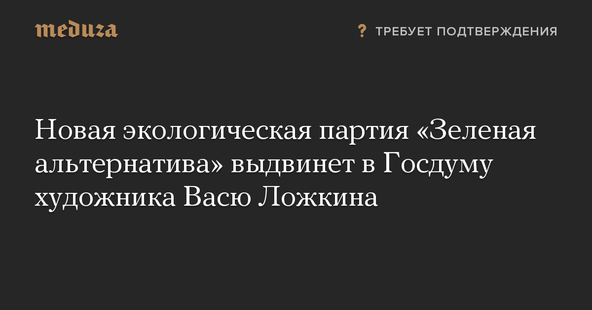Новая экологическая партия «Зеленая альтернатива» выдвинет в Госдуму художника Васю Ложкина