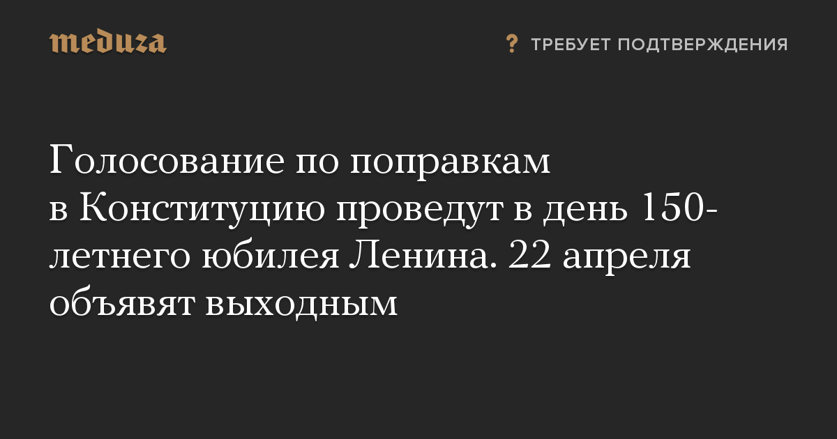 Голосование по поправкам в Конституцию проведут в день 150-летнего юбилея Ленина. 22 апреля объявят выходным