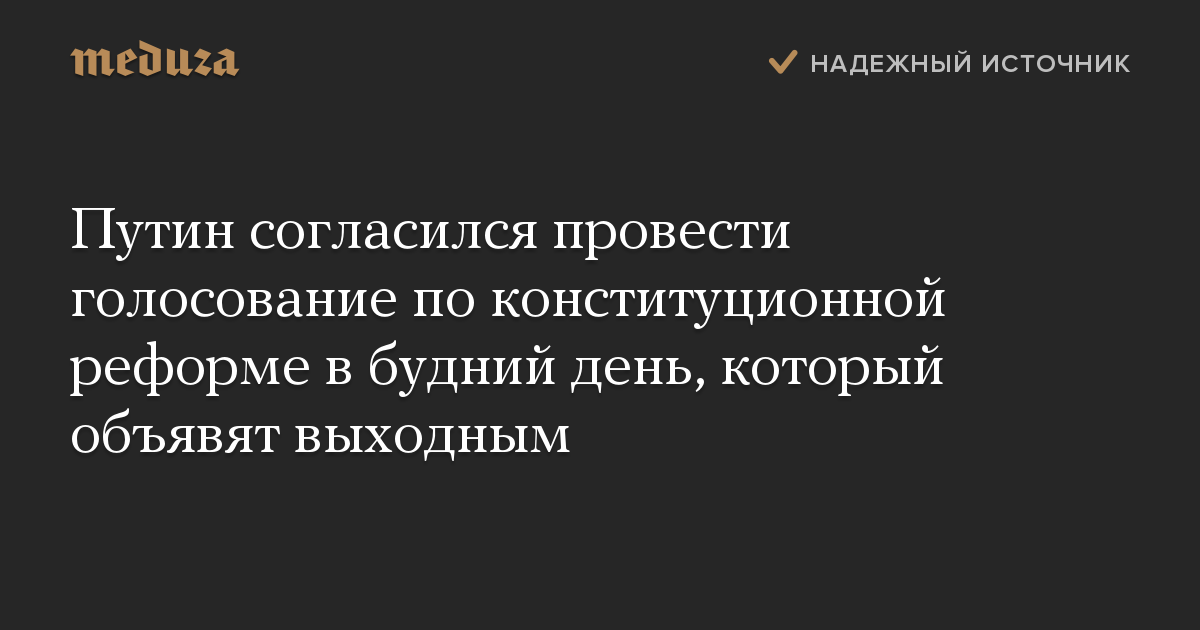 Путин согласился провести голосование по конституционной реформе в будний день, который объявят выходным