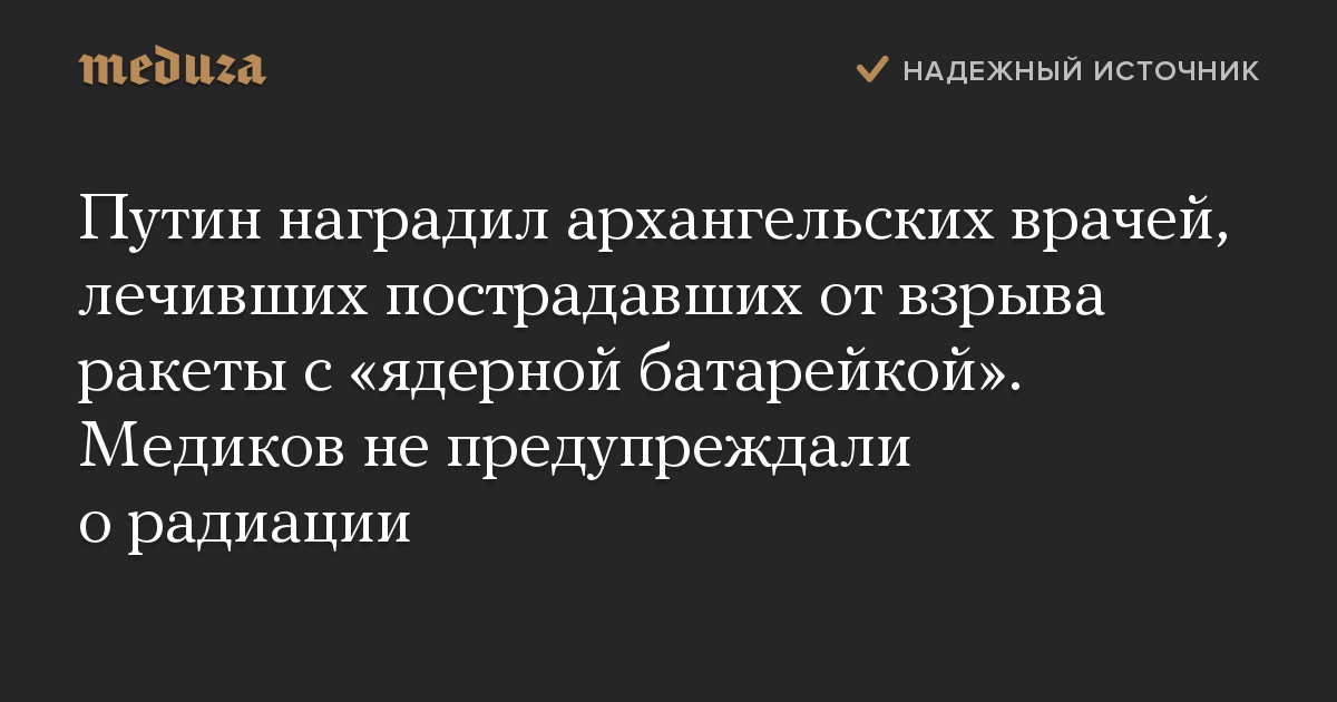 Путин наградил архангельских врачей, лечивших пострадавших от взрыва ракеты с «ядерной батарейкой». Медиков не предупреждали о радиации