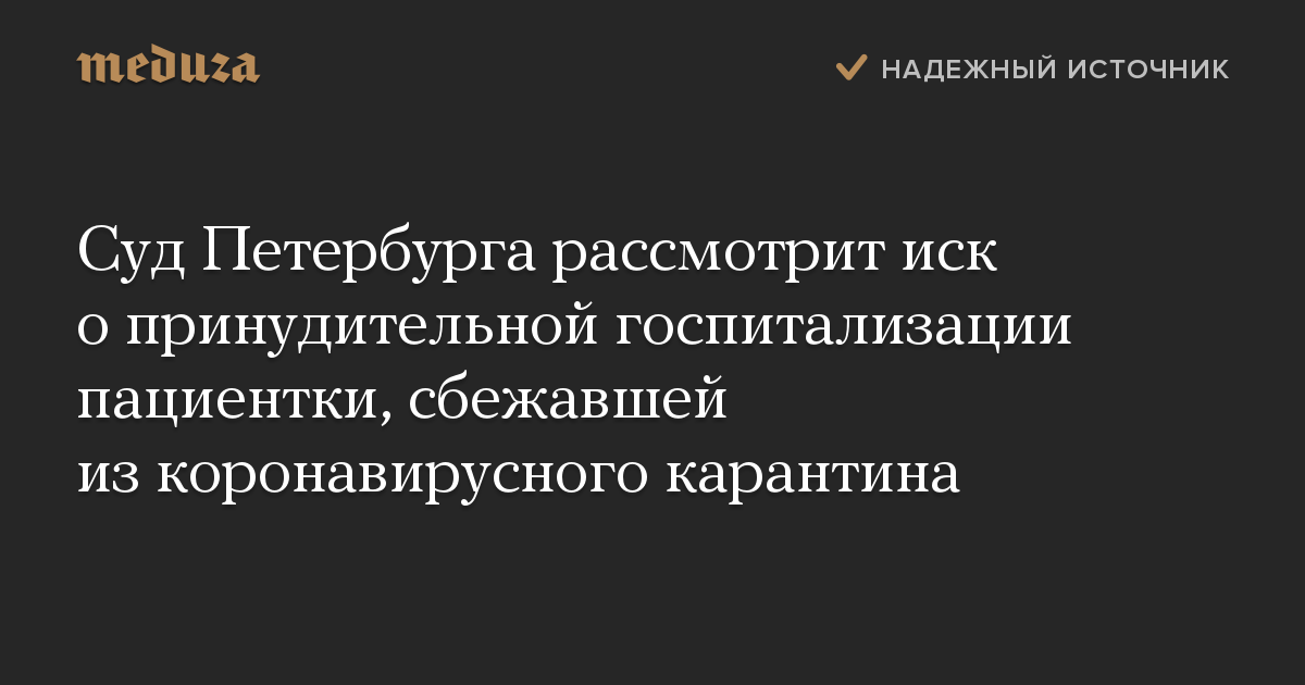 Суд Петербурга рассмотрит иск о принудительной госпитализации пациентки, сбежавшей из коронавирусного карантина